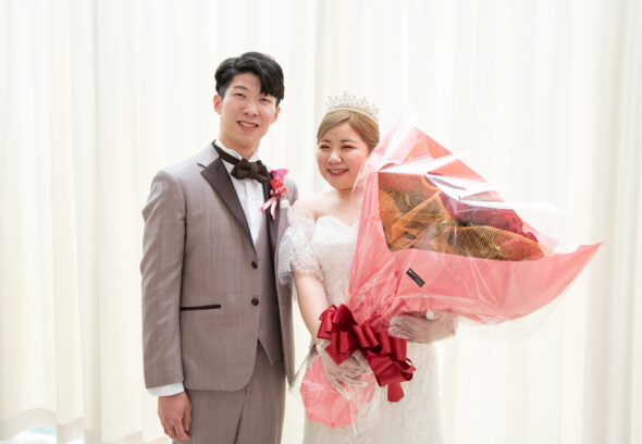 改めて愛を伝える真っ赤バラがお似合いのお二人♡