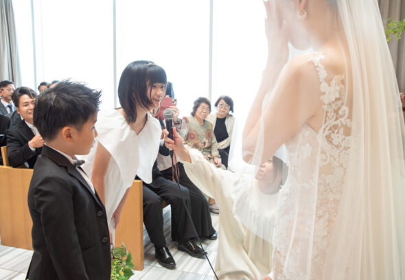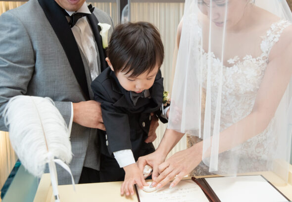 新郎新婦様と一緒にそばで頑張るお子様の姿は写真や映像にもしっかり刻まれています。