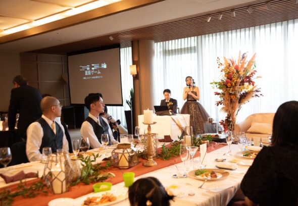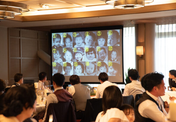 後半の進行のメインはおふたりオリジナルのクイズ大会。司会進行は盛り上げ上手の新郎新婦様、幼少期の写真を使って豪華景品をかけて盛り上がりました。